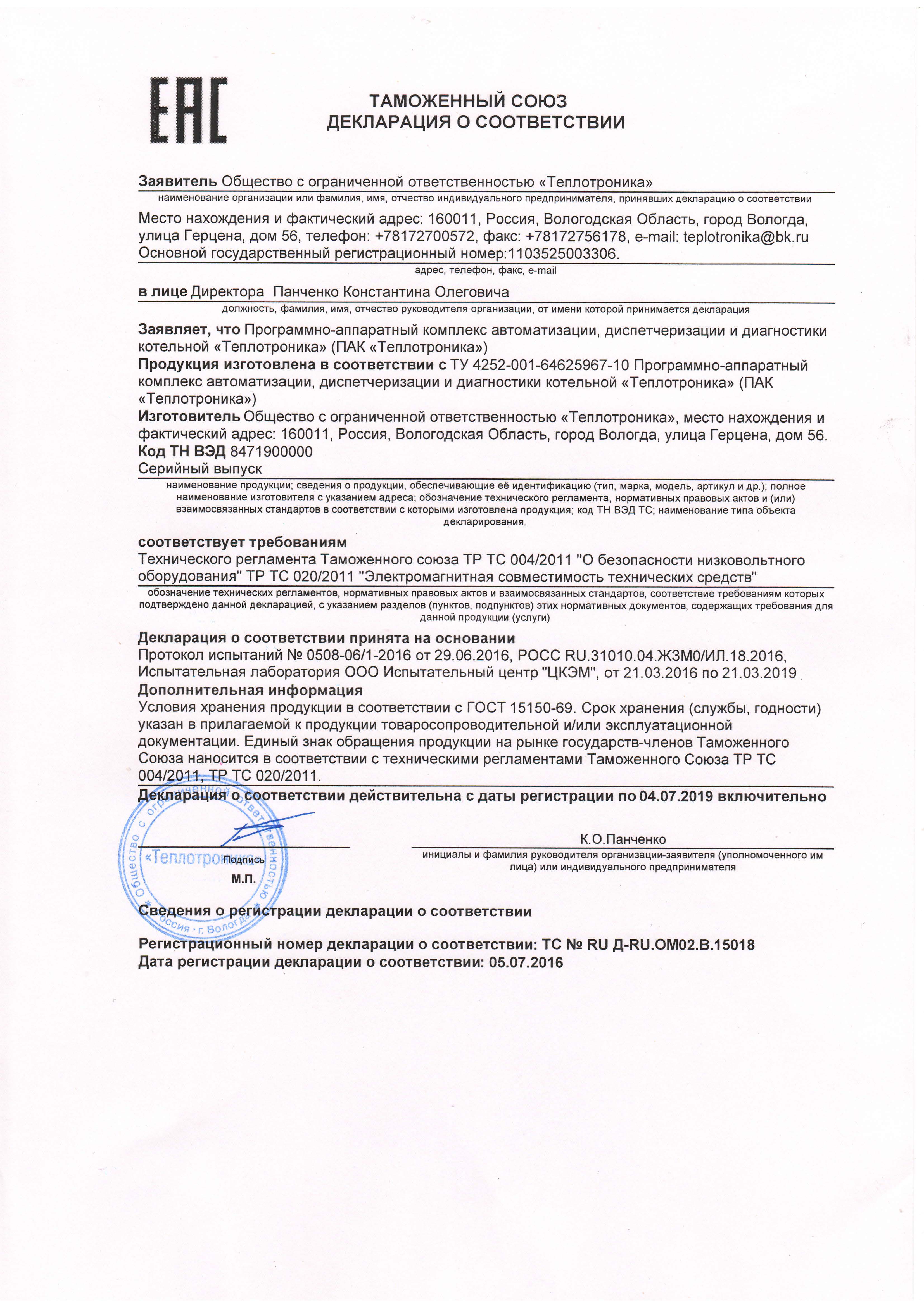 Программно-аппаратный комплекс автоматизации, диспетчеризации и диагностики котельной (ПАК) «Теплотроника»